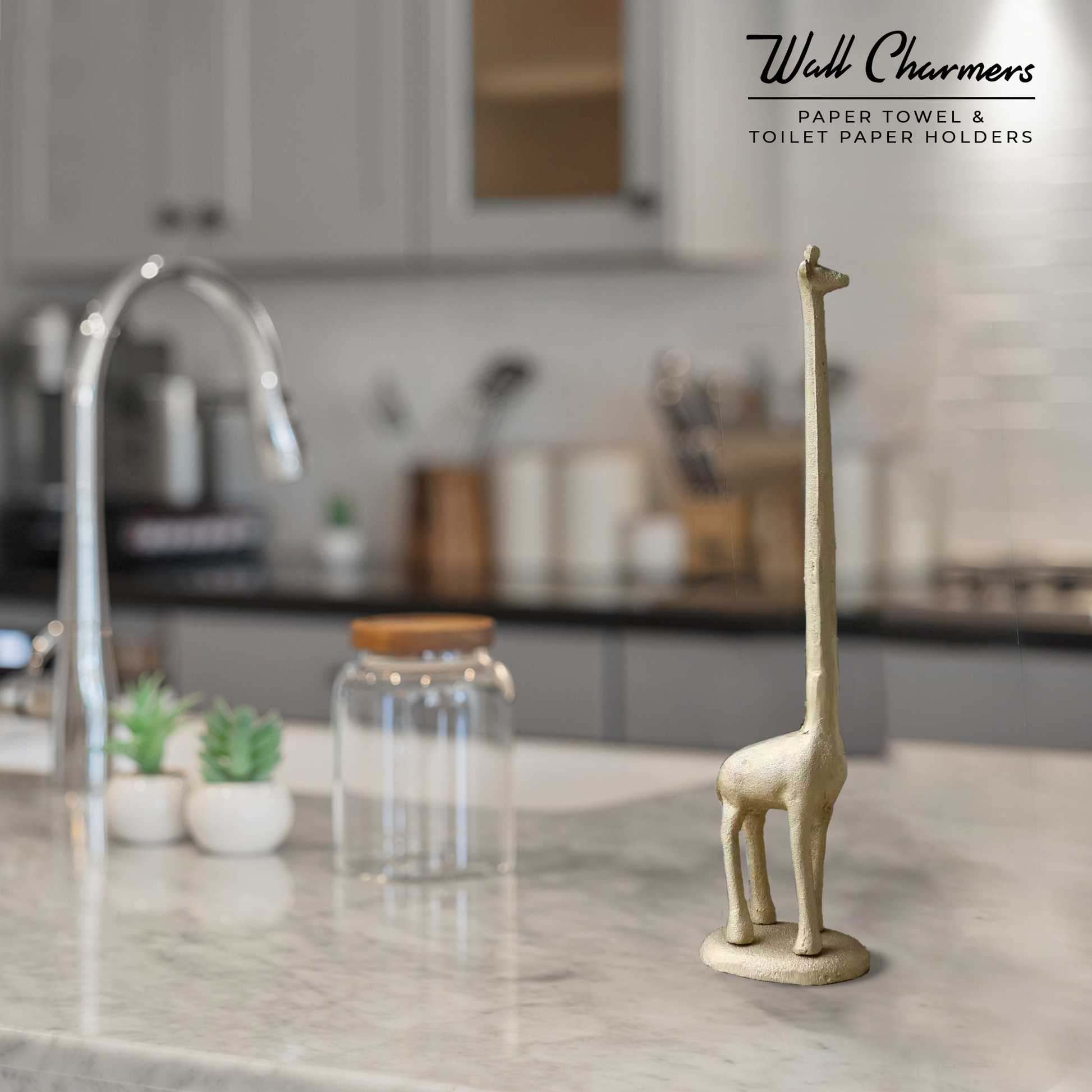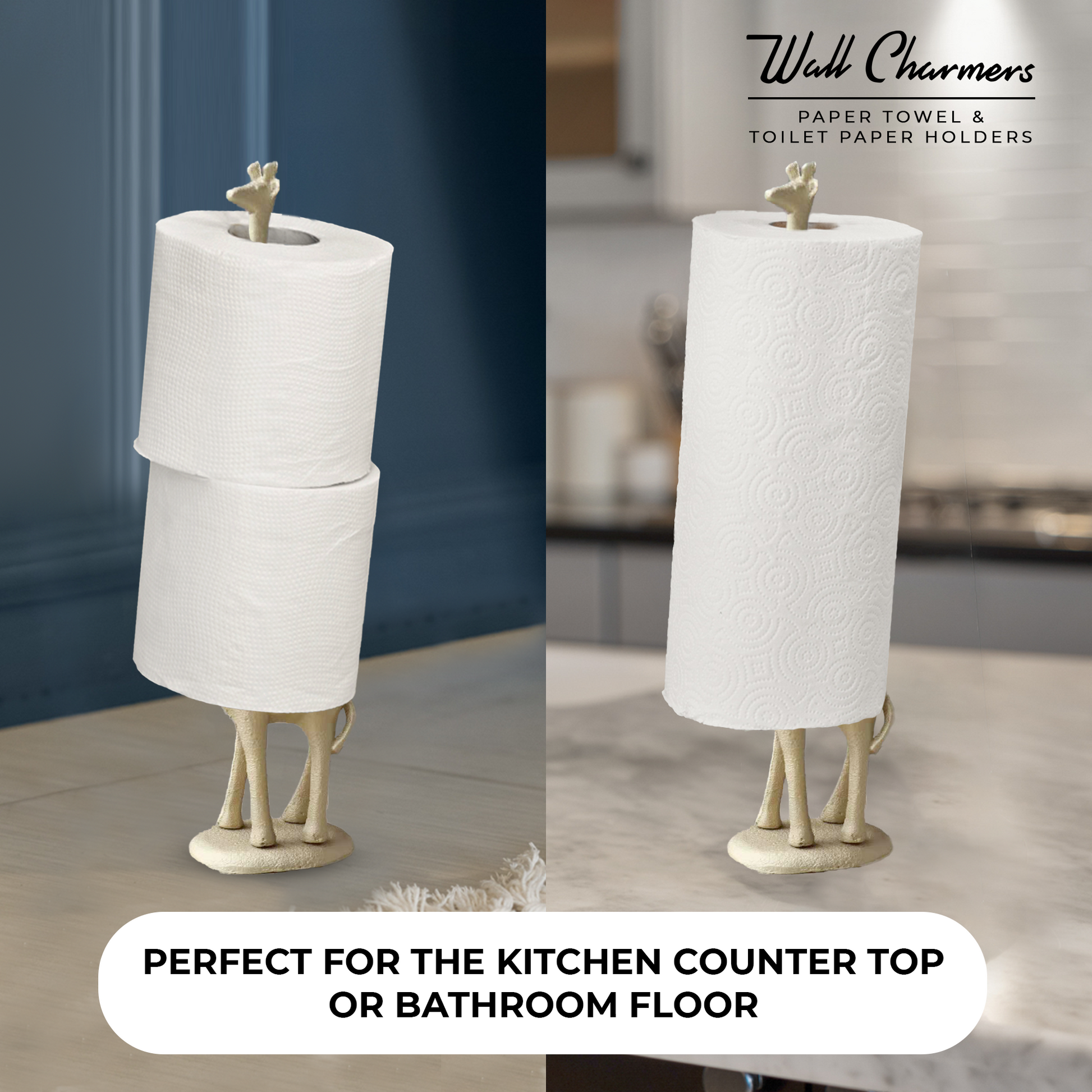 - Handmade Gold Cast Iron Metal Giraffe Paper Towel Holder is the perfect kitchen addition for any giraffe lover!